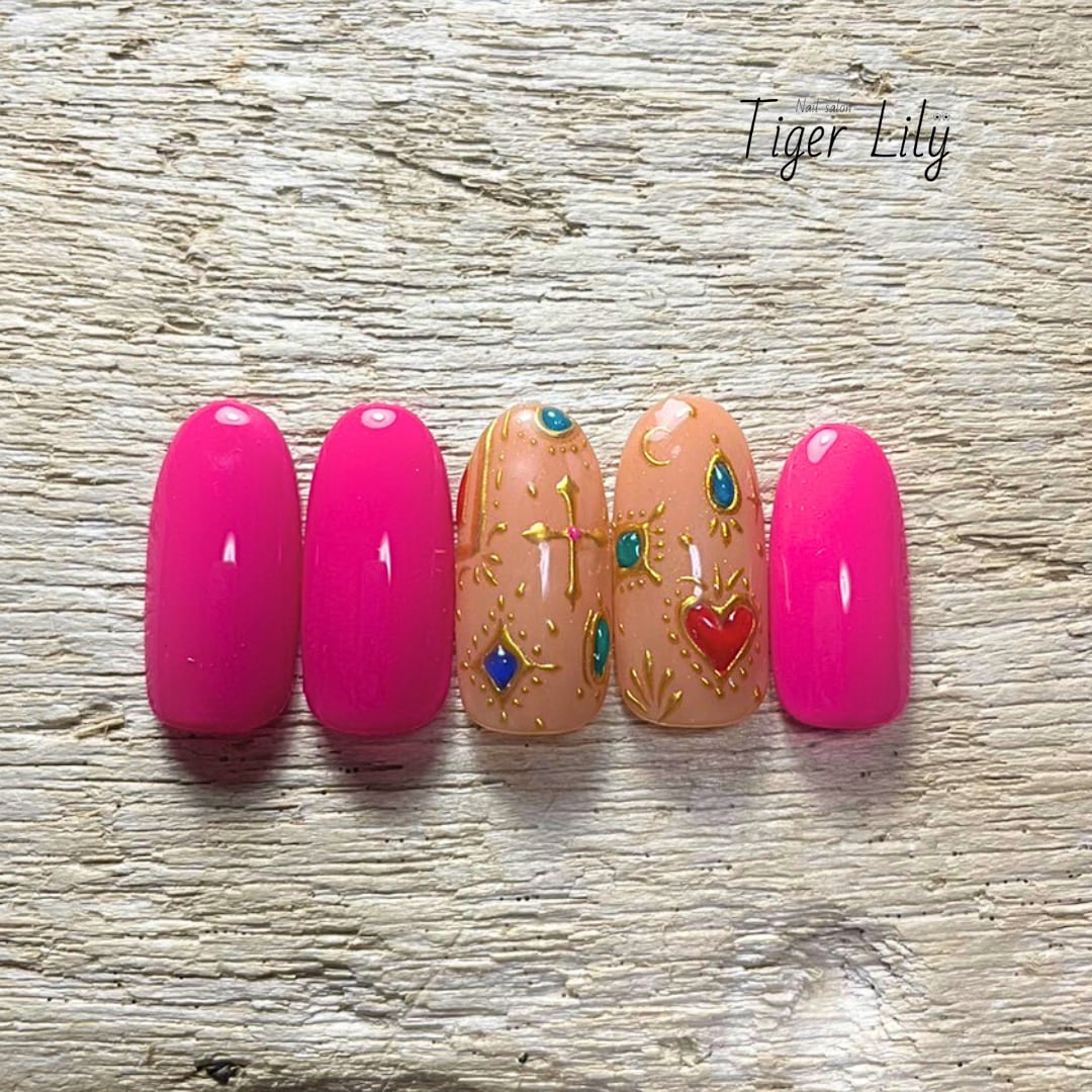 全て手描き⭐️メキシカンネイル♪
